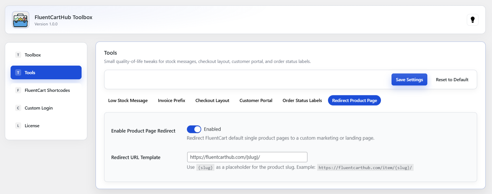 Easily enable or disable all Toolbox features site-wide with a single toggle.